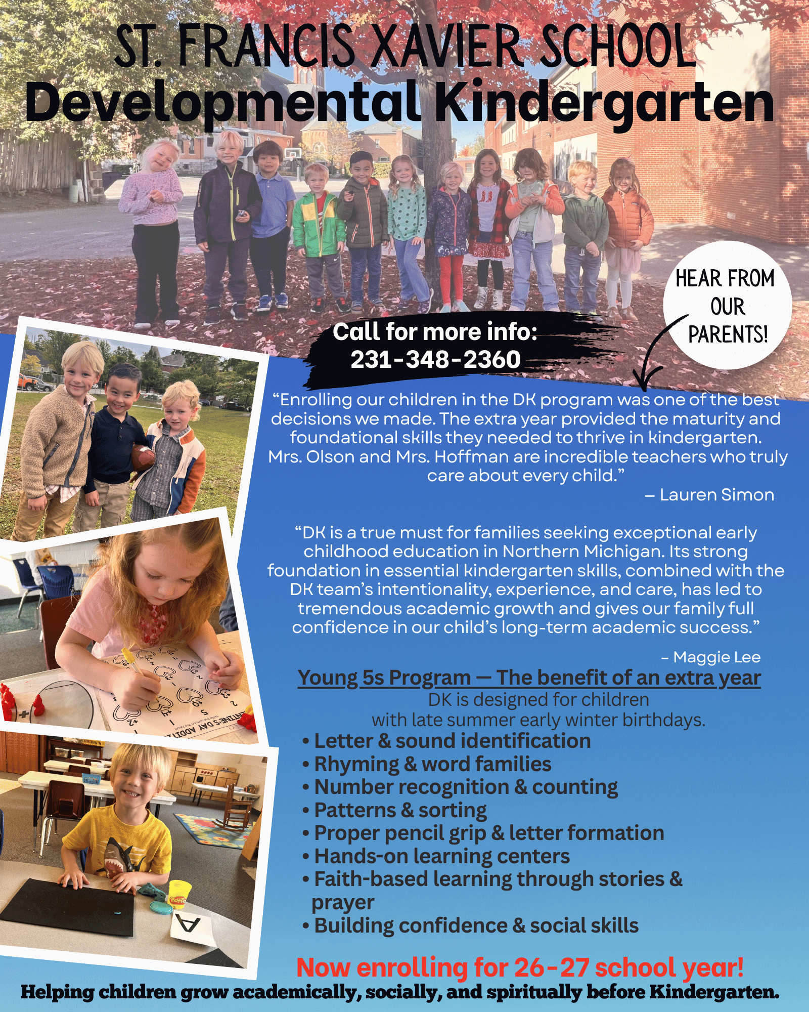For more information about the St. Francis Xavier Child Development Center or Preschool program, email us at cdc@petoskeysfx.org